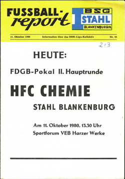 | 1980/81 | 2 | BSG Stahl Blankenburg - Hallescher FC Chemie | |