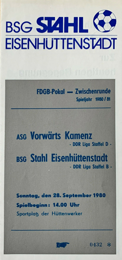 | 1980/81 | ZR | BSG Stahl Eisenhüttenstadt - ASG Vorwärts Kamenz | |