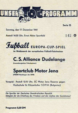 | 1961/62 | EC-Pokalsieger | 1 | Alliance Dudelange - SC Motor Jena (in Erfurt) | |