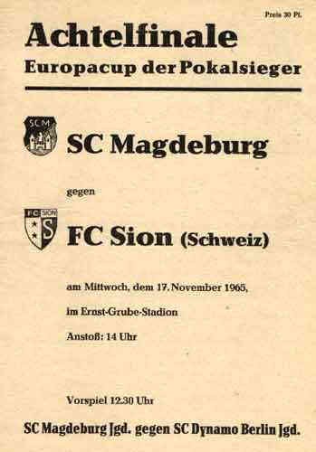 | 1965/66 | EC-Pokalsieger | AF | FC Sion - SC Magdeburg | |