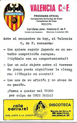 | 1980/81 | EC-Pokalsieger | AF | FC Carl Zeiss Jena - CF Valencia | |