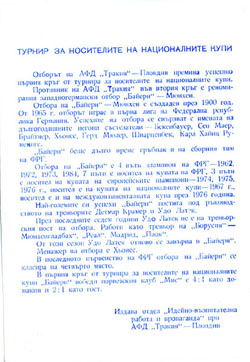 | 1984/85 | EC-Pokalsieger | AF | AFD Trakia Plovdiv - FC Bayern München | |