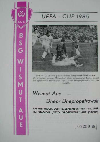 | 1985/86 | UEFA-Cup | 1 | Wismut Aue - Dnepr Dnepropetrows | |