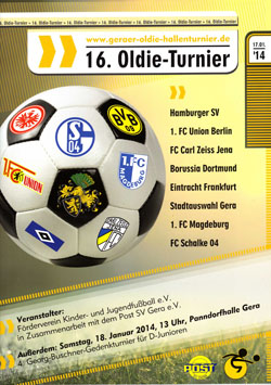 | 17.01.2014 | 16.Oldie-Turnier | Gera | Hamburger SV, 1. FC Union Berlin, FC Carl Zeiss Jena, Borussia Dortmund, Eintracht Frankfurt, Stadtauswahl Gera, 1. FC Magdeburg, FC Schlake 04 | |