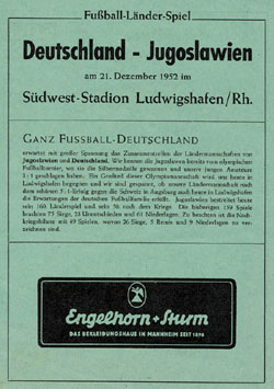 | Freundschaftsspiel | 21.12.1952 | Deutschland - Jugoslawien | |