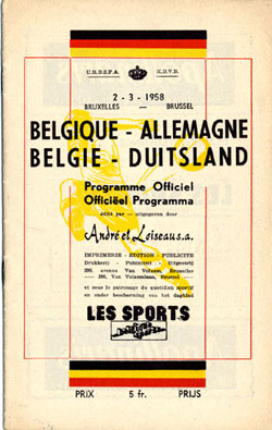| Freundschaftsspiel | 02.03.1958 | Belgien - Deutschland | |