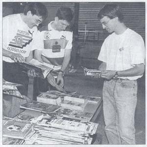 Zentnerweise "Fohlen-Echo", "Schalker Kreisel" und Kuriere anderer Vereine breiten 60 Sammler aus allen Landesteilen auf Tauschbörsen aus, wie eine jetzt in der Langenfelder Hubertushalle stattfand. In drei Stunden wechselten dort Tausende von Programmen aus den Fussballstadien der Welt ihre Besitzer - ebenso wie Hunderte von Geldscheinen die auf den Tisch geblättert wurden, wenn sich unverhofft die Möglichkeit auftat, eine Sammlerlücke zu schließen. Besonders begehrt sind die Stadionzeitschriften von Europapokal-Auswärtsspielen im ehemaligen Ostblock, vor allem aus Bulgarien und Rumänien. "Die Auflagen waren gering, und die meisten der wenigen mitgereisten Fans haben die Heftchen nicht lesen können. Wer damals trotzdem eins mit nach Hause nahm, besitzt heute eine absolute Rarität", erzählt DPV-Gründungsmitglied Dieter Holz und bekommt leuchtende Augen.