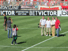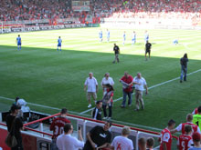 am Zugangsbereich zum Spielfeld. Dieser kündigte dann vom Mittelpunkt aus